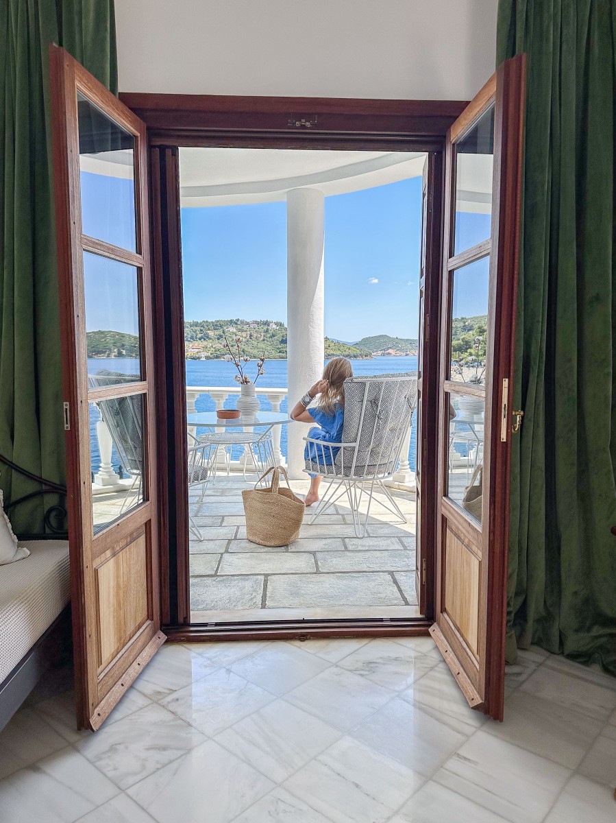 The Superior Suite is located on the first floor with a furnished balcony and stunning sea view of the old port and Bourtzi from the round balcony. There is access to the garden for sunbathing and to the seafront for swimming.